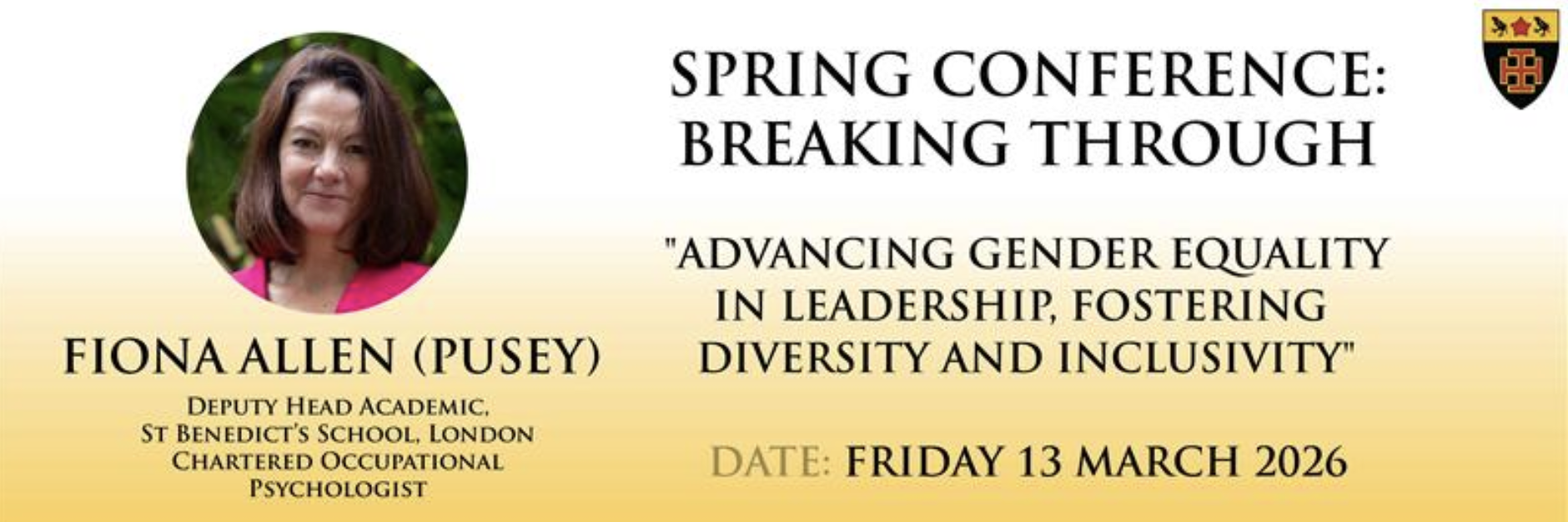 GEC Member school St Benedict’s School presents their spring conference: Breaking Through - advance gender equality in leadership, fostering diversity and inclusivity, on the 13th March 2026.